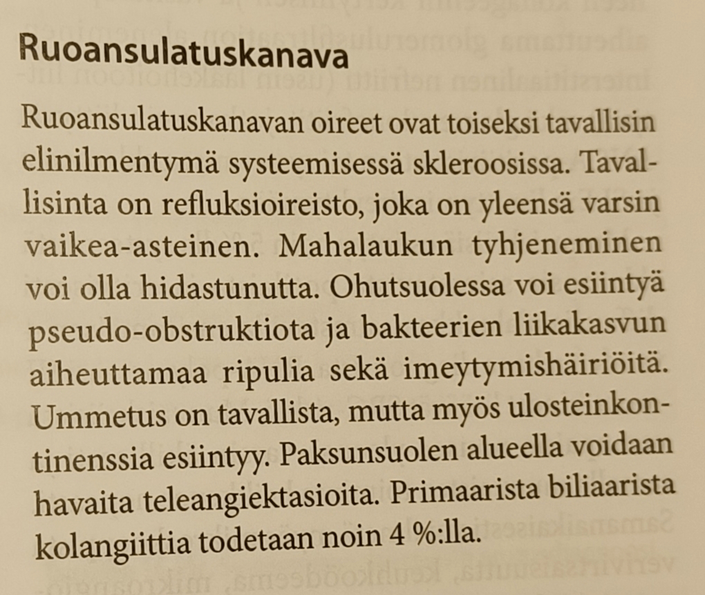Systeeminen skleroosi on joissakin tapauksissa merkittävä osasyy ”pissavaivoihin” eli alavirtsateiden toiminnan ongelmiin. SSc:n ja virtsaamisongelmien yhteydestä kerroin tällä sivustolla jo 17.10.2021 blogikirjoituksessani, jonka nimi on ”Hätää kärsimässä”. Vuonna 2022 julkaistusta kirjastani ”Systeeminen skleroosi ja morfea” löytyy virtsankarkailua ja sen hoitoa koskevaa tekstiä sivuilta 97–99. Täydennän…